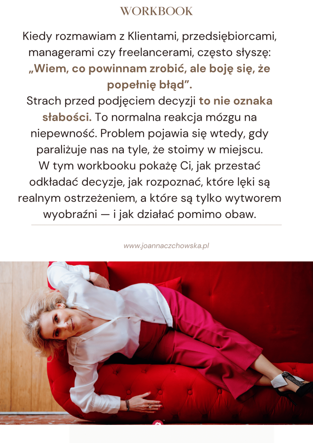Jak podejmować pewne decyzje biznesowe pomimo strachu i niepewności – workbook